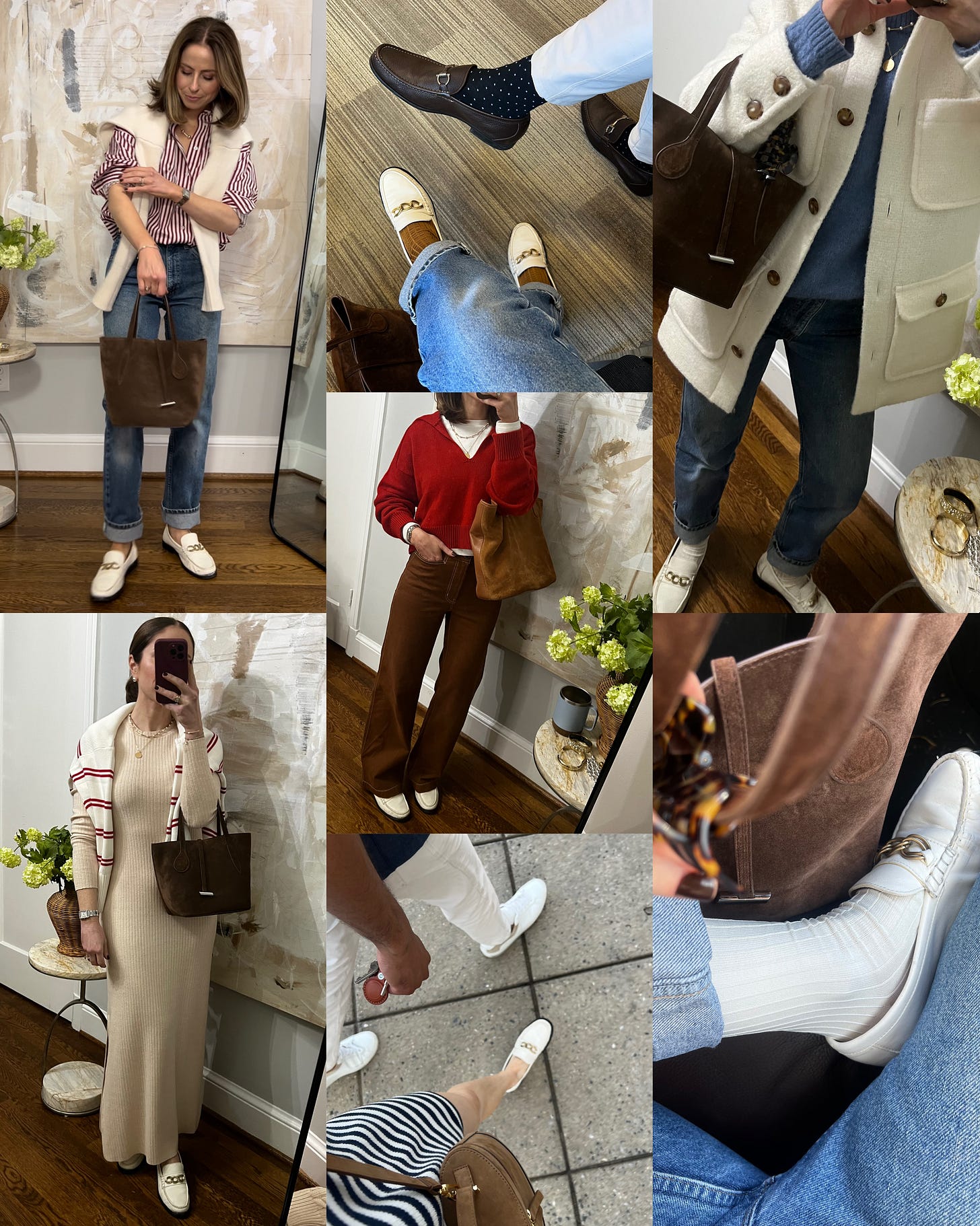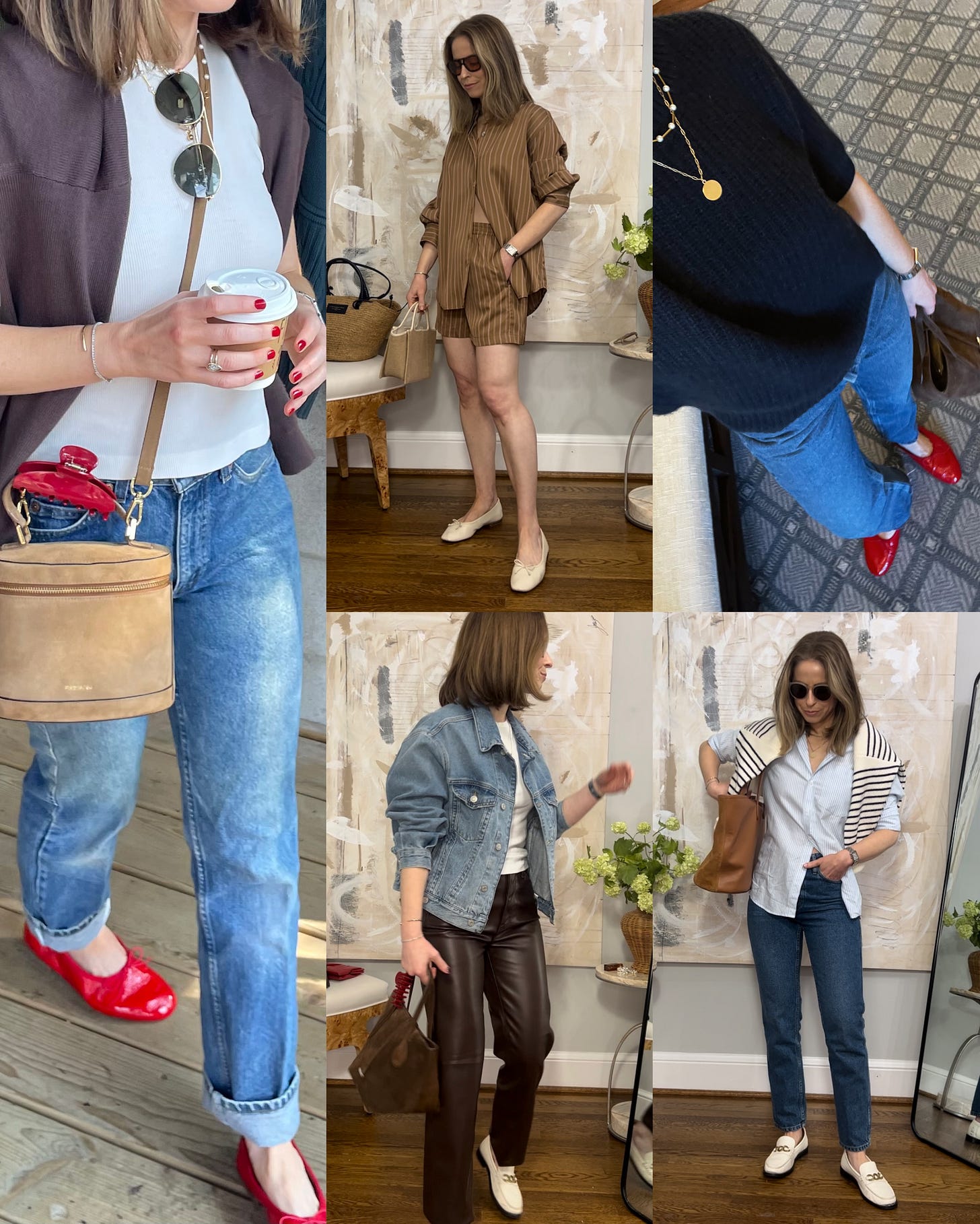My most worn button ups are the max shirt from Sezane (the white version styled in the middle and the denim version in the bottom right), the boyfriend style from With Nothing Underneath (the linen version is styled in the top right), and the Donna shirt from Classic Six (not pictured above, but trust me…the quality is beautiful and the details are so thoughtful! A white sneaker wasn’t an essential for me this year. I gravitated towards a comfortable ballet flat, loafer, or retro sneaker when styling casual outfits. A great reminder to not take any “essentials” list as a universal checklist for what you should have or be wearing — it is SO subjective!